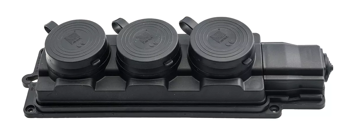 Listwa gumowa trójgniazdowa bez przewodu, 16A, 250V, schuko, czarna, IP44