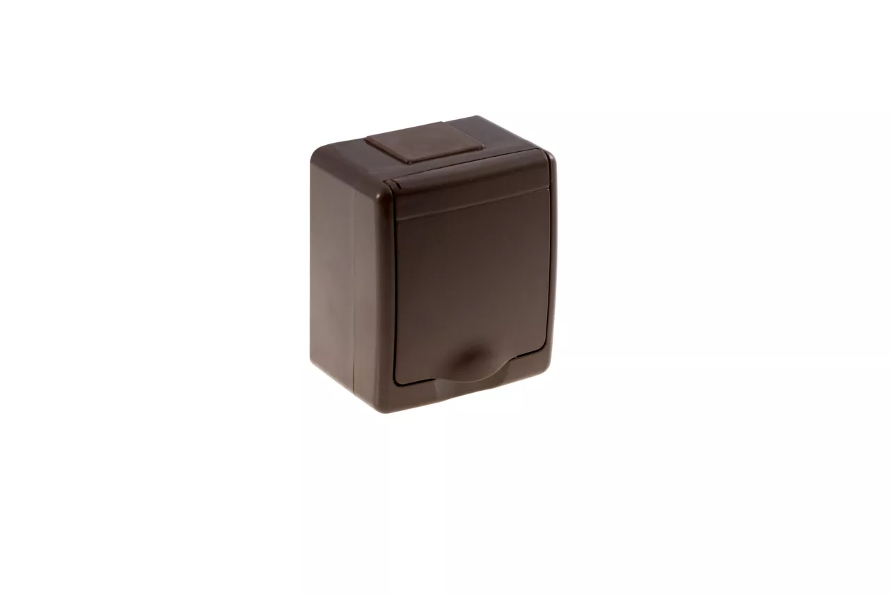 Gniazdo BETA pojedyncze, brązowe, brązowa klapka, IP44