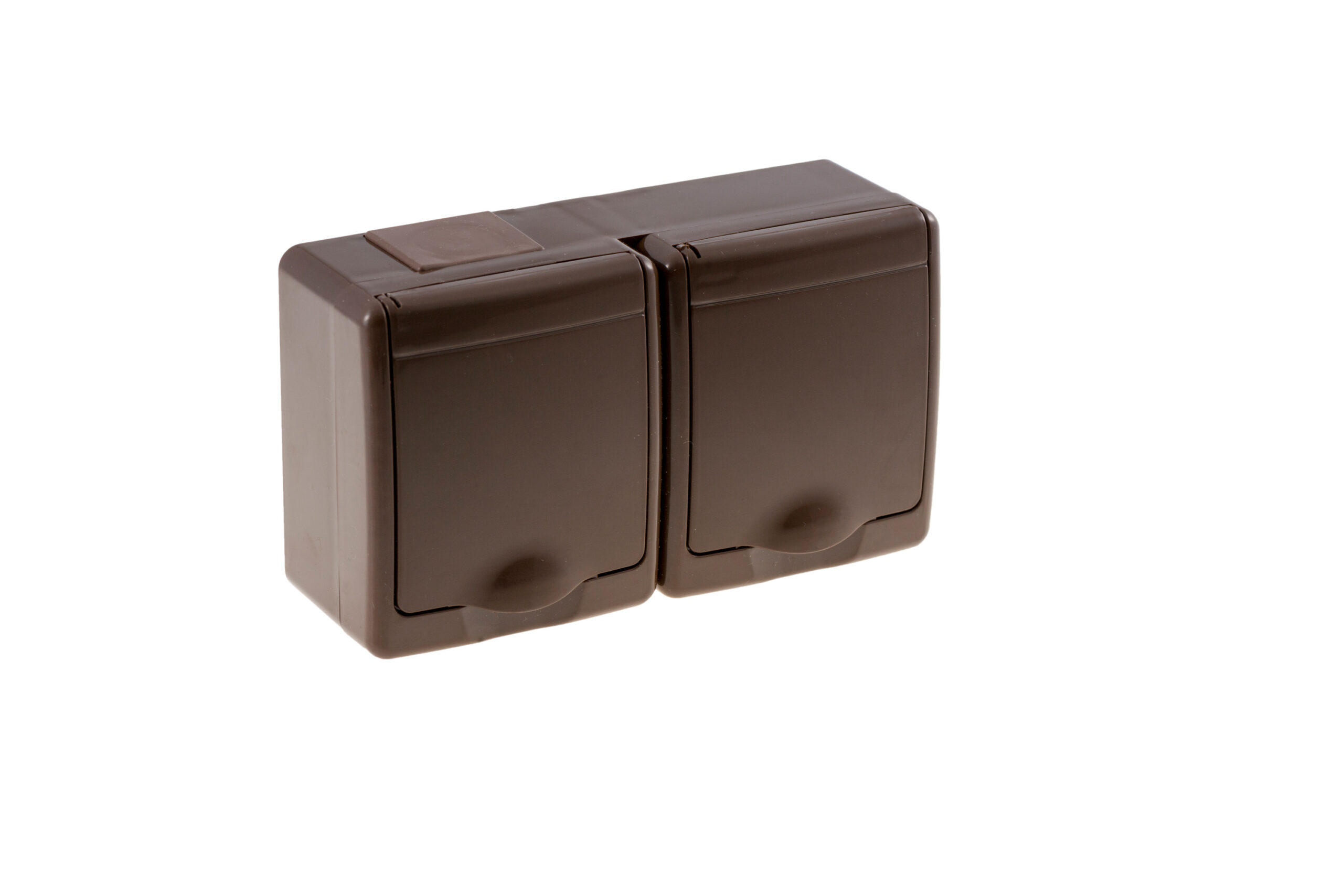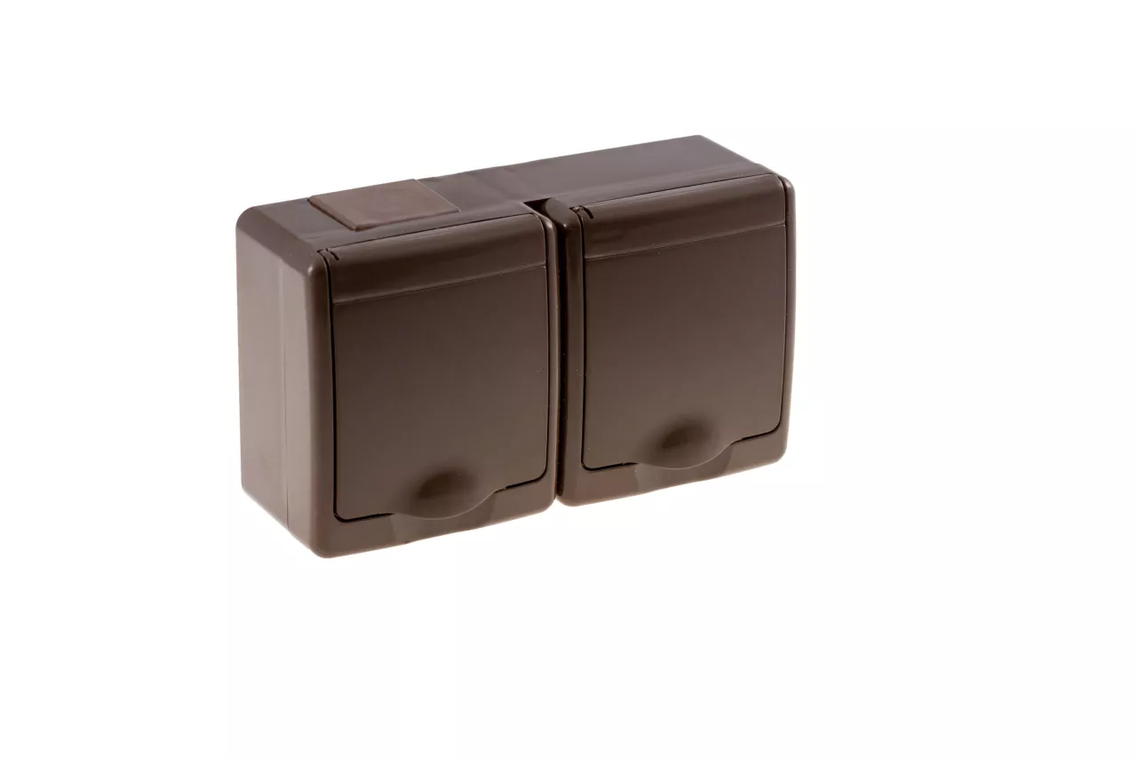 Gniazdo BETA podwójne, brązowe, brązowa klapka, IP44