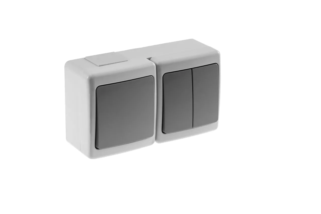 Wyłącznik BETA podwójny, jednobiegunowy i świecznikowy, szary, IP44