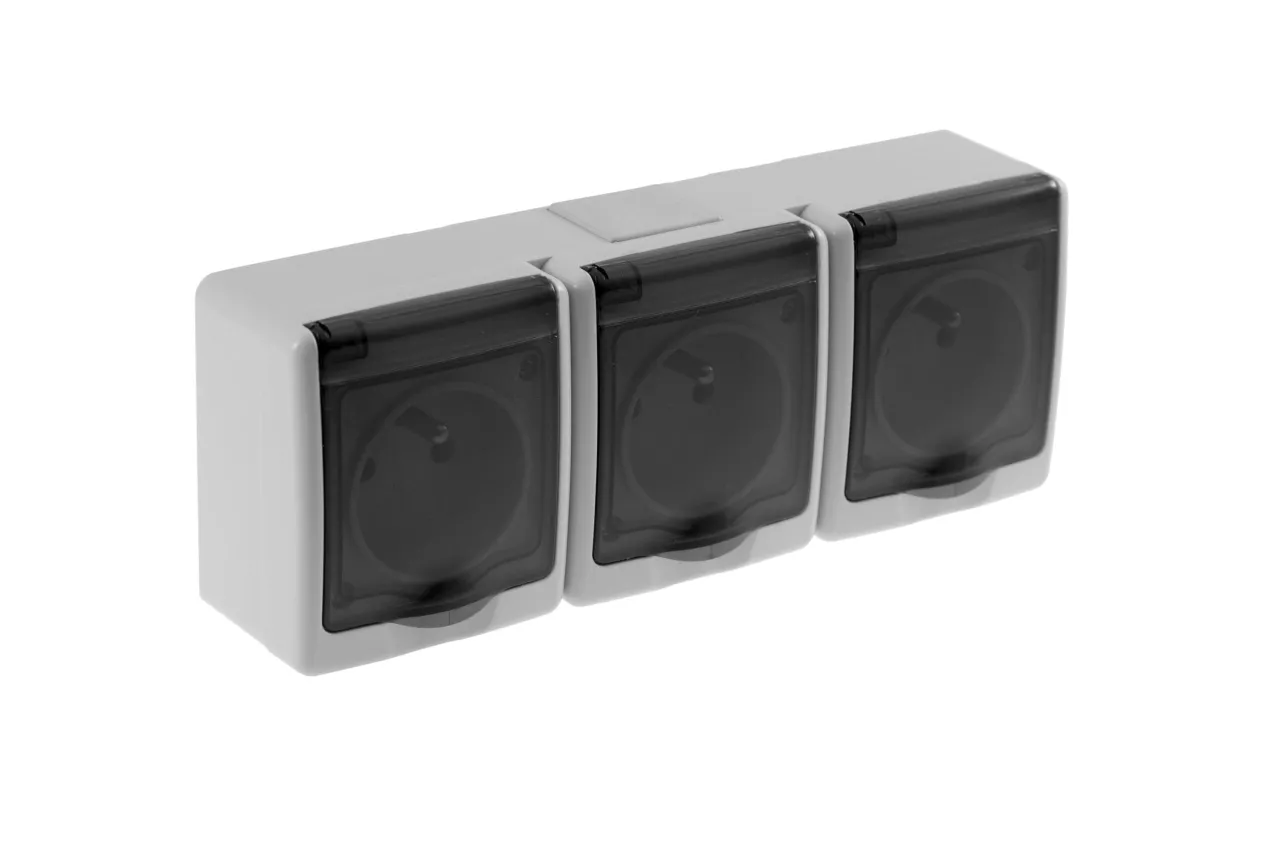 Gniazdo BETA potrójne, szare, dymna klapka, IP44