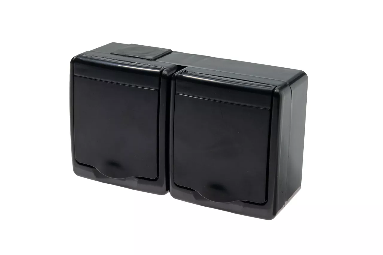 Gniazdo BETA podwójne schuko, czarne, czarna klapka, IP44