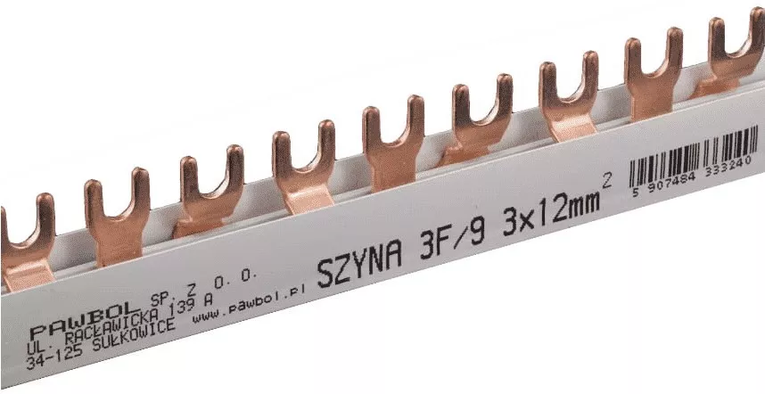 Szyna prądowa łączeniowa 3-fazowa, widełkowa, S-9, 12mm2, 80A, 400V