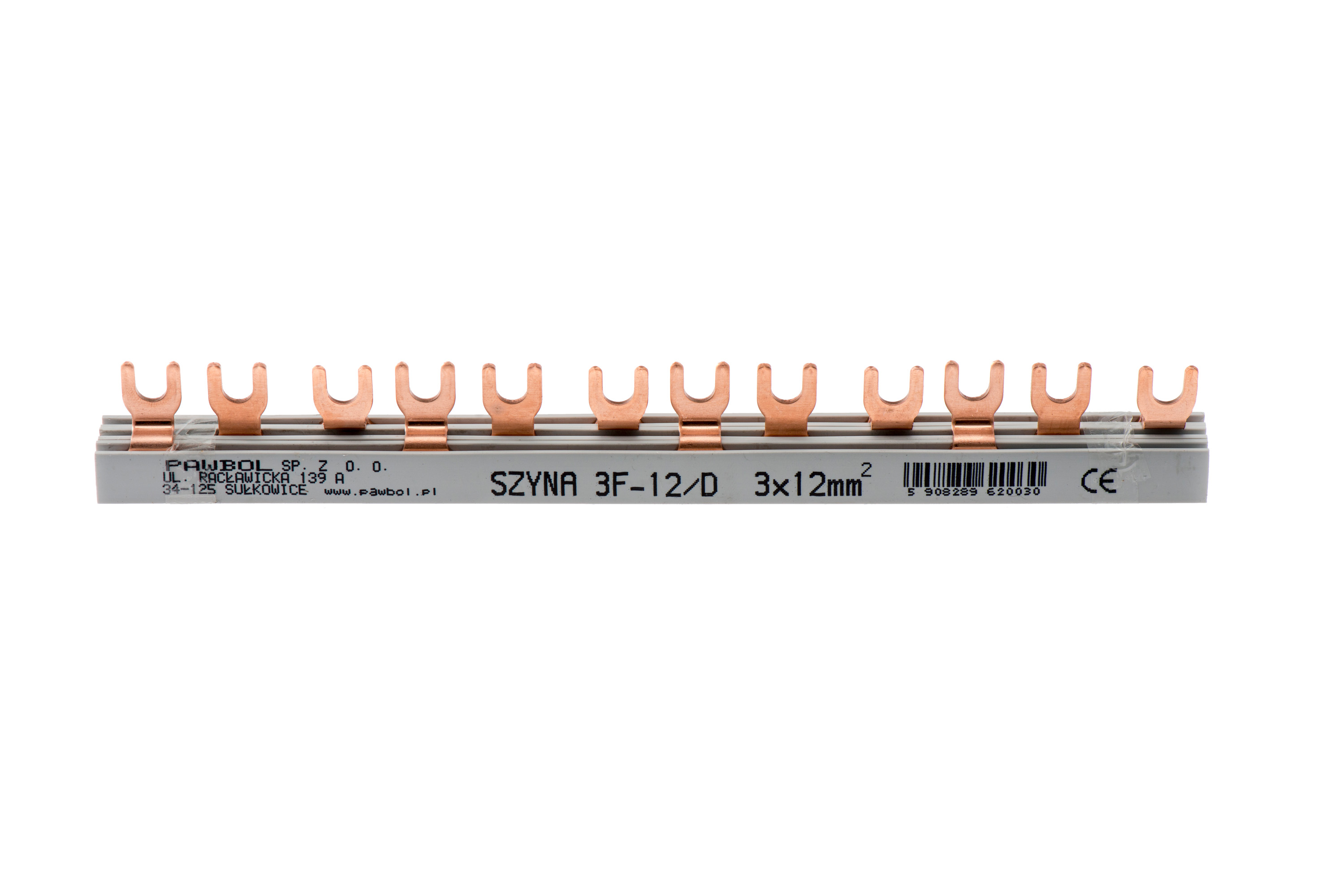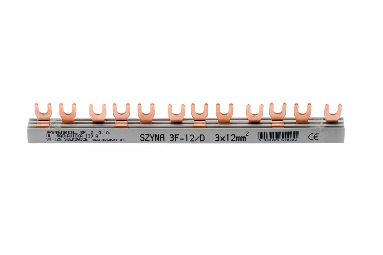 Szyna prądowa łączeniowa 3-fazowa, widełkowa, dzielona, S-12, 12mm2, 80A, 400V