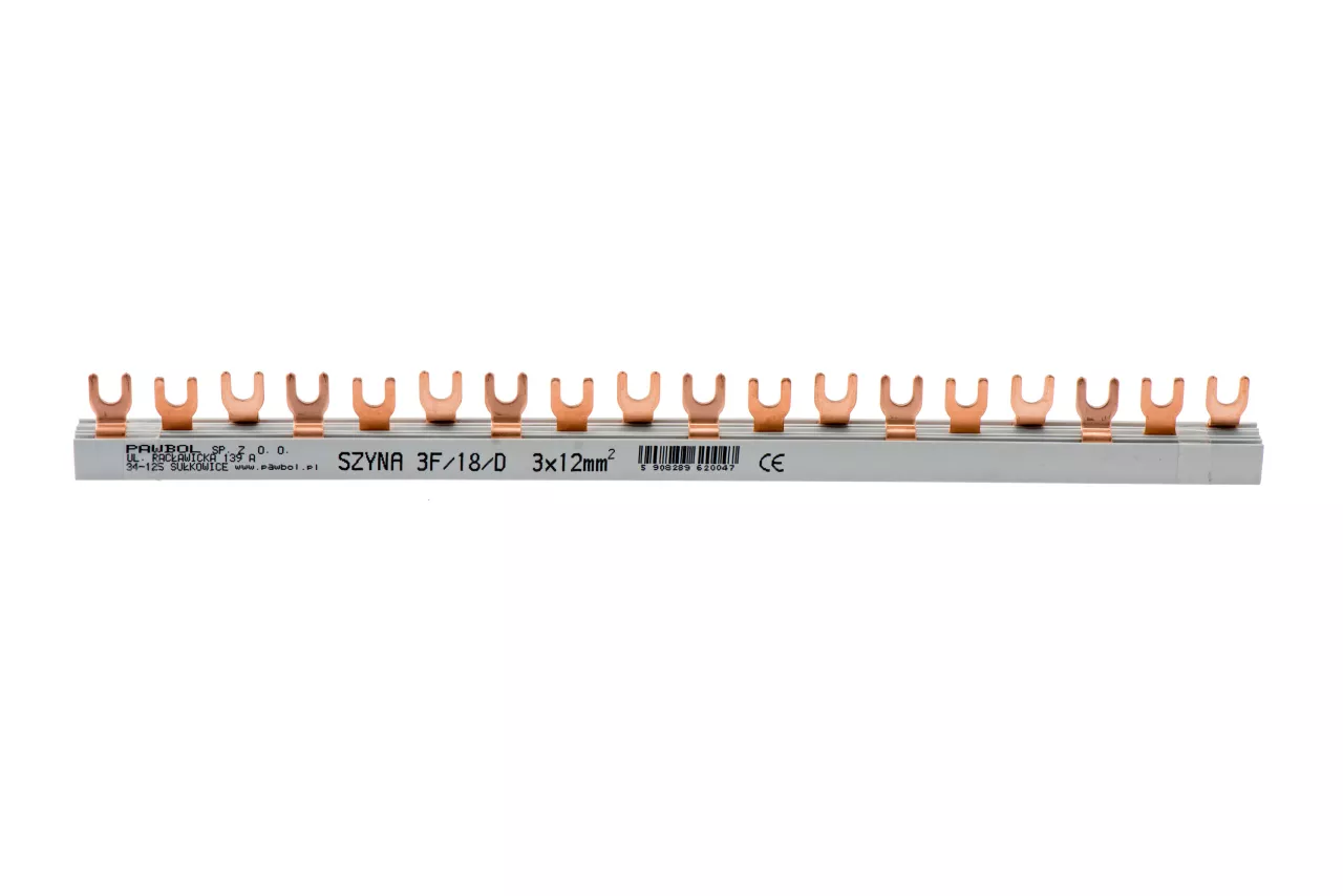 Szyna prądowa łączeniowa 3-fazowa, widełkowa, dzielona, S-18, 12mm2, 80A, 400V