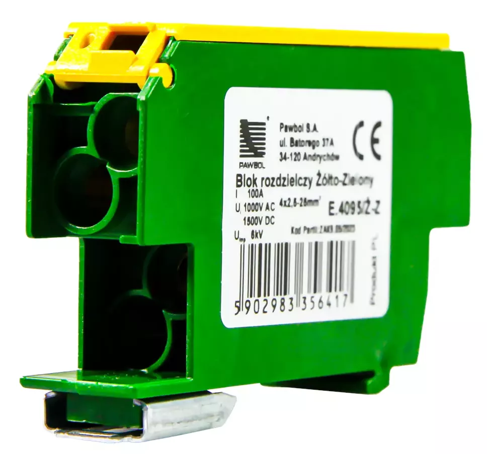 Blok rozdzielczy, Al/Cu, 4x2,5-25mm2 / 4x2,5-25mm2, 160A, 600V, żółto-zielony