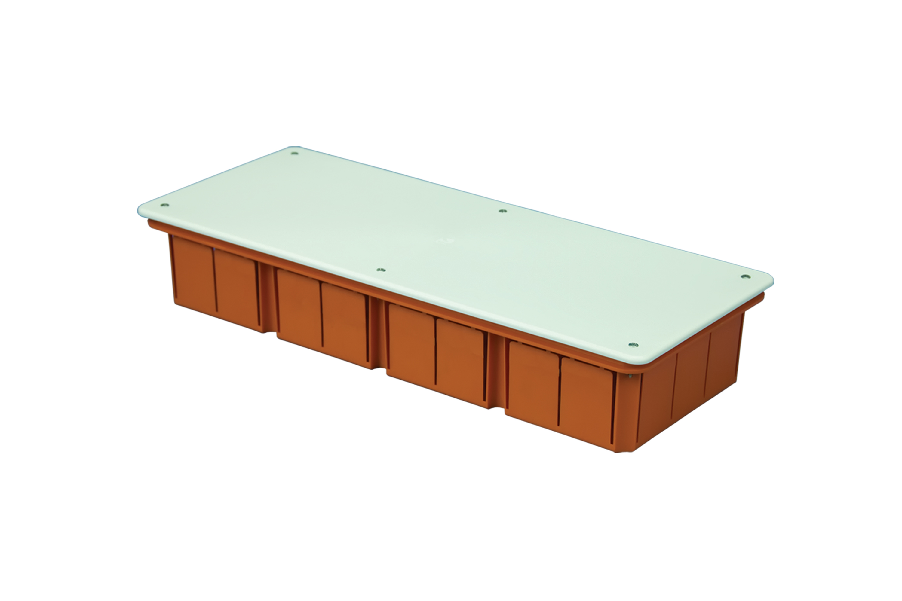 Puszka podtynkowa 388x152x70, płytka, z wkrętami, pomarańczowa, z pokrywą białą, IP30