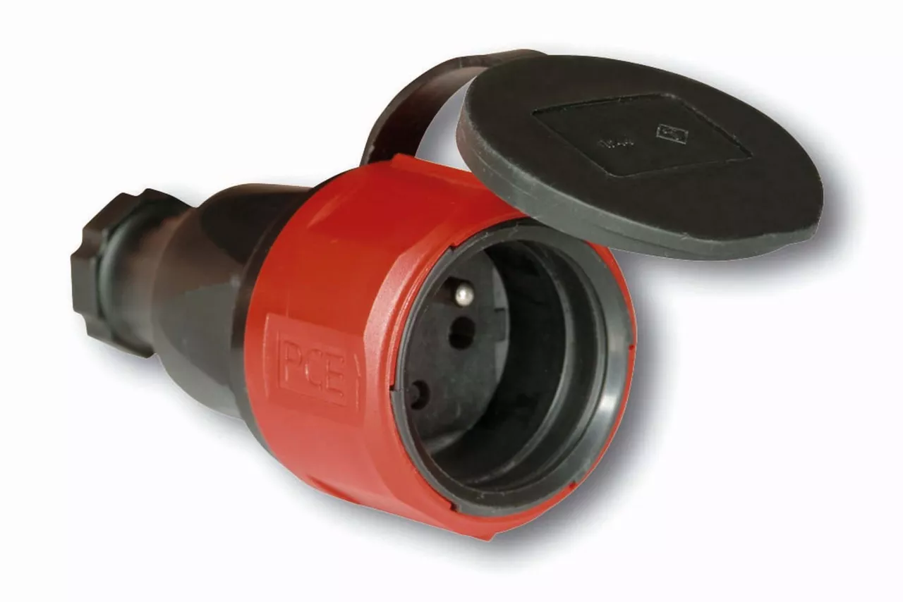 Gniazdo przenośne jednofazowe gumowe z bolcem + zatyczka + blokada 10/16A 2 P+Z