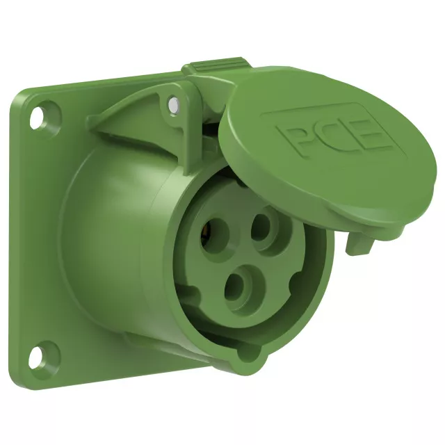 Gniazdo tablicowe proste 16A 2P+Z >50-500V 100-300Hz 10h IP44, kołnierz 70X70, rozstaw śrub 56X56
