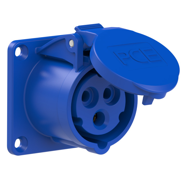 Gniazdo tablicowe proste 16A 2P+Z 230V 50/60Hz 6h IP44, kołnierz 65X65, rozstaw śrub 52X52, styki niklowane