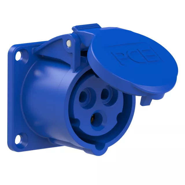 Gniazdo tablicowe proste 16A 2P+Z 230V 50/60Hz 6h IP44, kołnierz 60X60, rozstaw śrub 47X47, styki niklowane