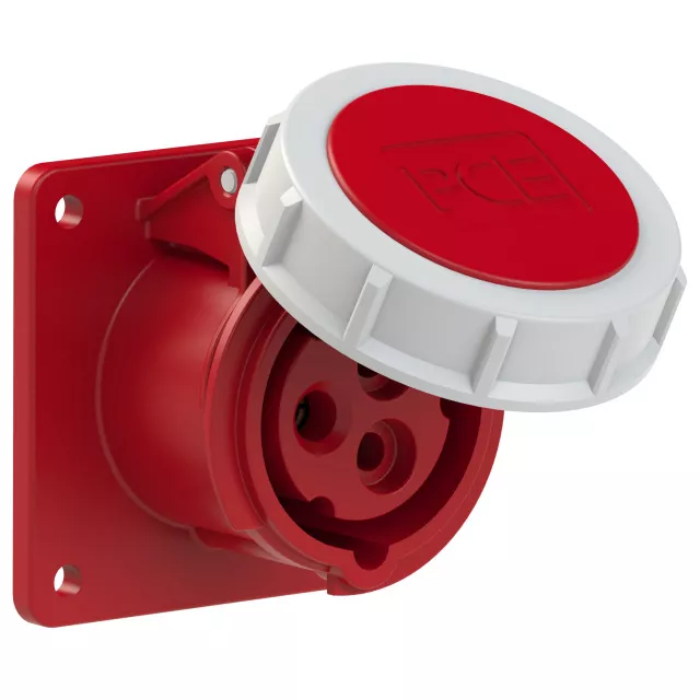 Gniazdo tablicowe proste 16A 2P+Z 400V 50/60Hz 9h IP67, kołnierz 75X75, rozstaw śrub 60X60, styki niklowane