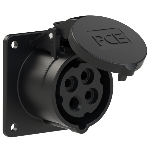 Gniazdo tablicowe proste 16A 3P+Z 500V 50/60Hz 7h IP44, kołnierz 75X75, rozstaw śrub 60X60