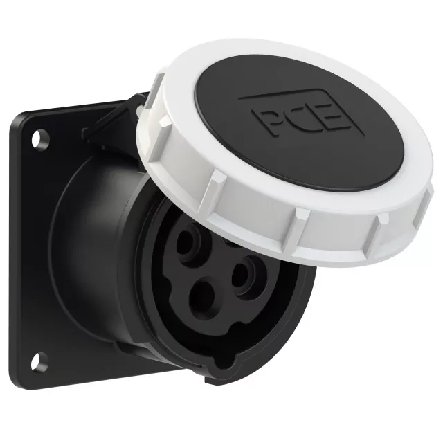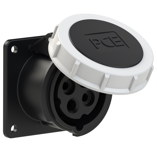Gniazdo tablicowe proste 16A 3P+Z 500V 50/60Hz 7h IP67, kołnierz 75X75, rozstaw śrub 60X60, styki niklowane