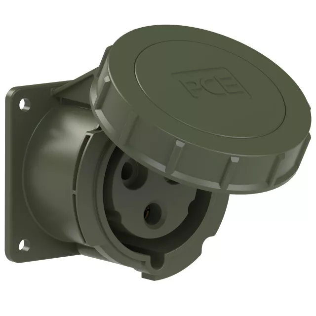 Gniazdo tablicowe proste wojskowe 32A 2P+Z 230V 50/60Hz 6h IP67, kołnierz 75X75, rozstaw śrub 60X60