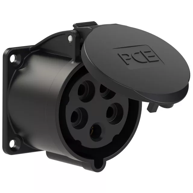Gniazdo tablicowe proste TURBO TWIST 32A 3P+Z+N 400V 50/60Hz 6h IP44, kołnierz 70X70, rozstaw śrub 56X56, seria MIDNIGHT