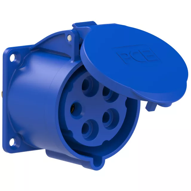 Gniazdo tablicowe proste 32A 3P+Z+N 230V 50/60Hz 9h IP44, kołnierz 70X70, rozstaw śrub 56X56