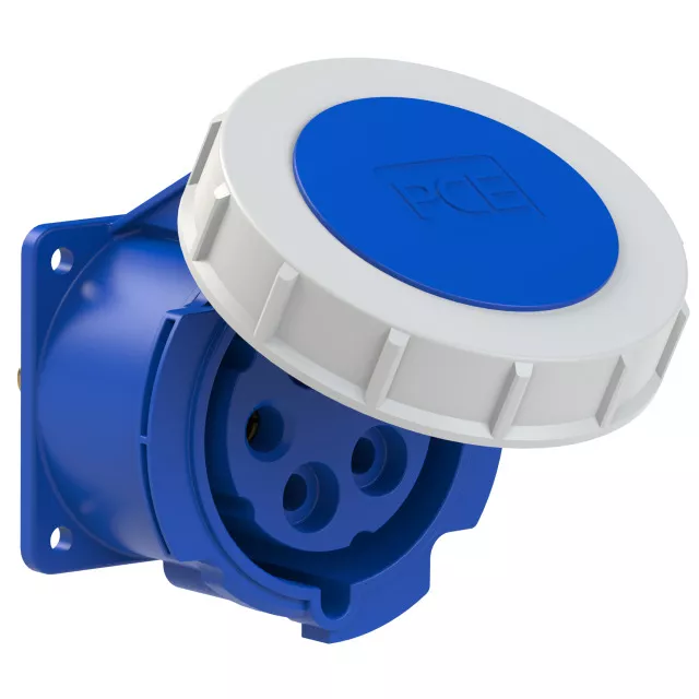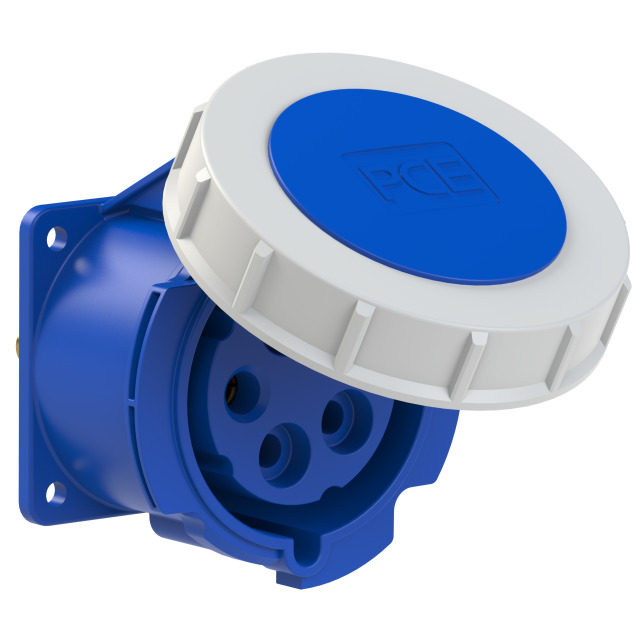 Gniazdo tablicowe proste 32A 3P+Z+N 230V 50/60Hz 9h IP67, kołnierz 70X70, rozstaw śrub 65X65