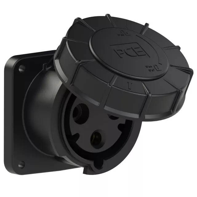 Gniazdo tablicowe proste POWER TWIST 63A 2P+Z 230V 50/60Hz 6h IP66/67, kołnierz 100X100, rozstaw śrub 80X80, CZARNE