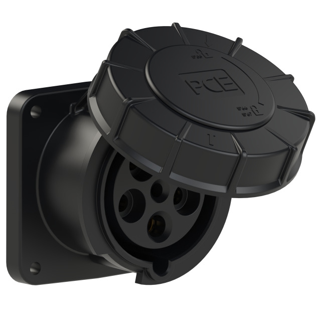 Gniazdo tablicowe proste POWER TWIST 63A 3P+Z+N 400V 50/60Hz 6h IP66/67, kołnierz 100X100, rozstaw śrub 80X80, seria MIDNIGHT