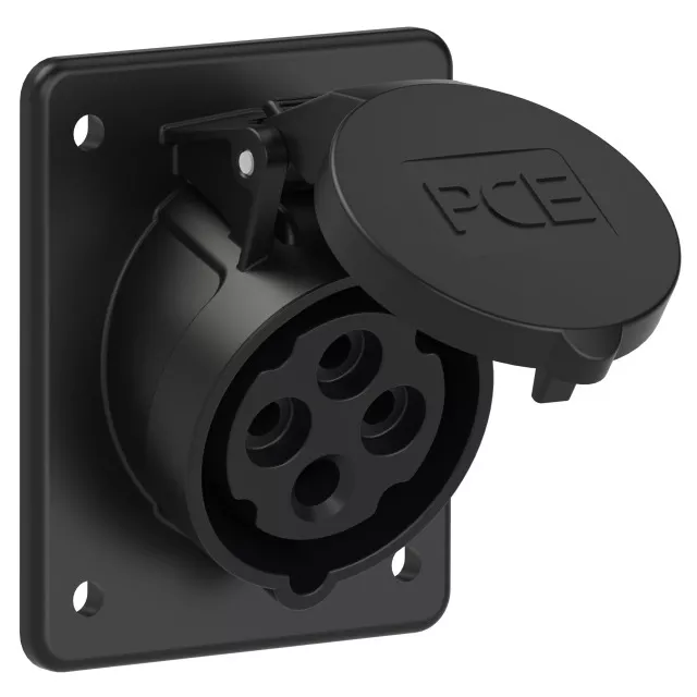 Gniazdo tablicowe skośne 16A 3P+Z 400V 50/60Hz 6h IP44/54 (kołnierz 80X97, rozstaw śrub 60X73), seria MIDNIGHT