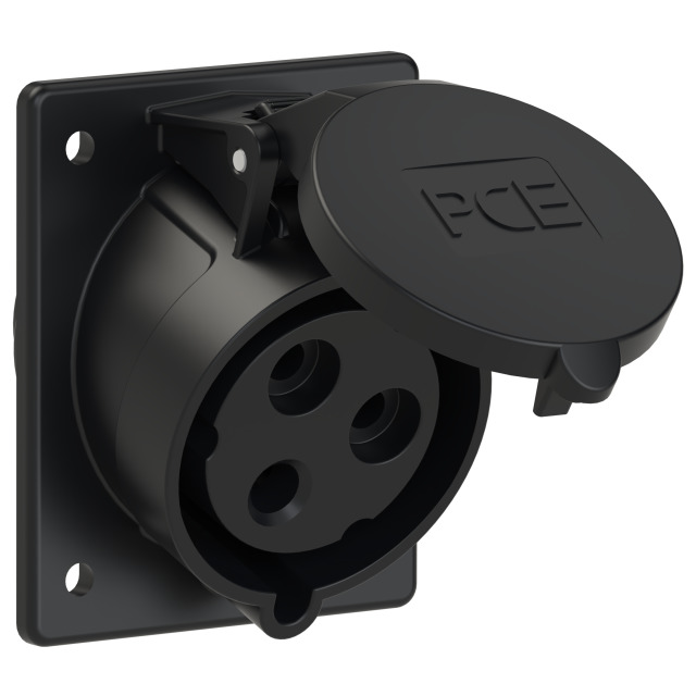 Gniazdo tablicowe skośne 32A 2P+Z 500V 50/60Hz 7h IP44/54 (kołnierz 80X97, rozstaw śrub 60X73)