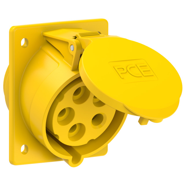 Gniazdo tablicowe skośne 32A 3P+Z+N 110V 50/60Hz 4h IP44/54 (kołnierz 80X97, rozstaw śrub 60X73)