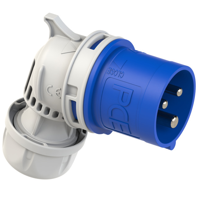 Wtyczka przenośna kątowa 16A 2P+Z 230V 50/60Hz 6h IP44, styki niklowane