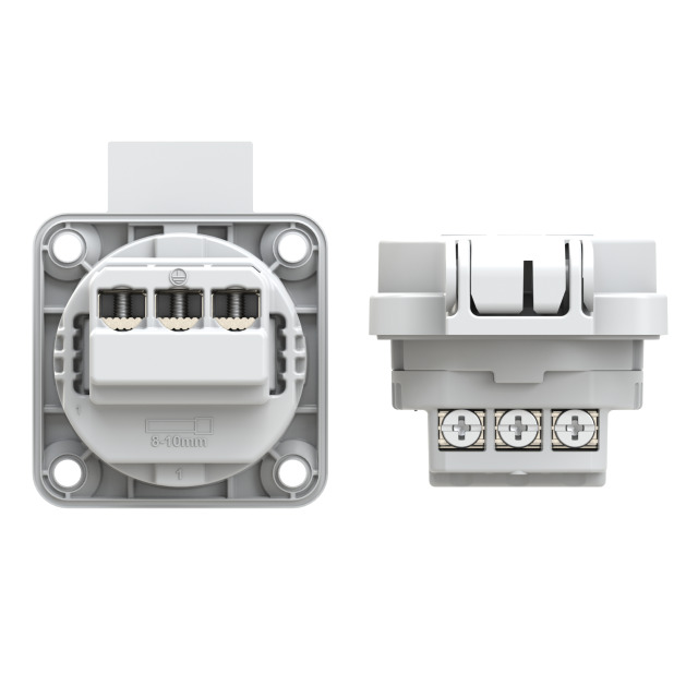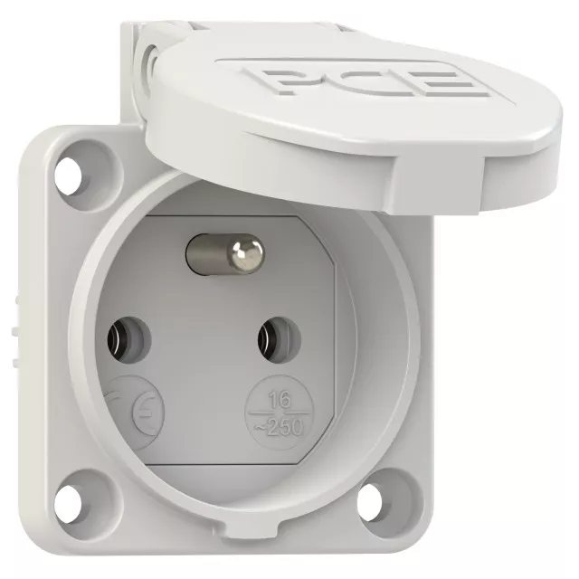 Gniazdo wtyczkowe wersja z bolcem 16A 2P+Z 230V 50/60Hz IP54, tylne podłączenie kołnierz 50X50, styki niklowane, szare 104-0g