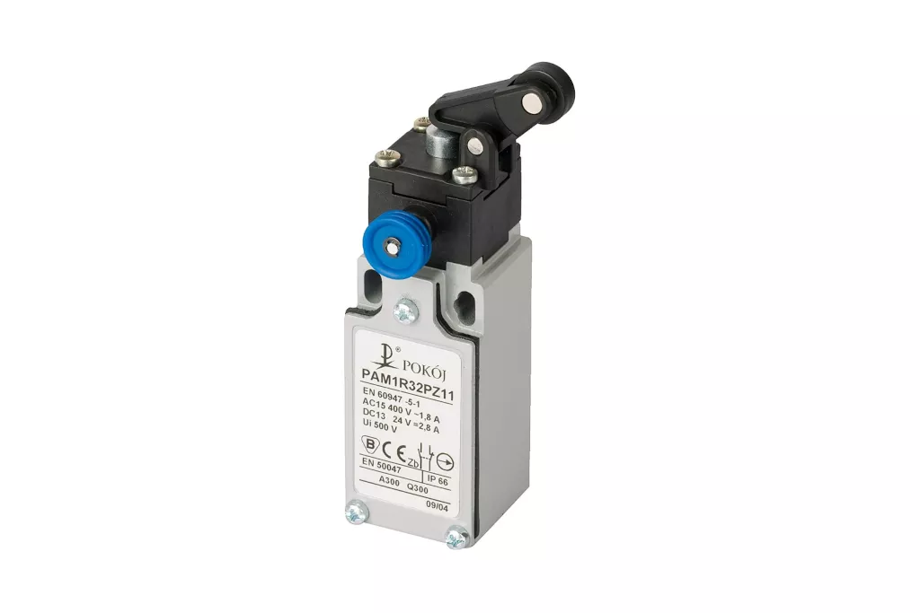 Wyłącznik krańcowy 1R 1Z migowy metal popychacz stalowy dźwignia pionowa z rolką Ø12,5 z resetem PAM1R32PZ11 A37-4R40