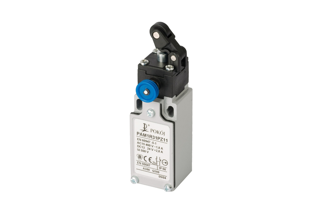 Wyłącznik krańcowy 1R 1Z migowy metal popychacz stalowy i dźwignia pozioma z rolką z tworzywa Ø12,5 z reset PAM1R31PZ11 A37-4R30