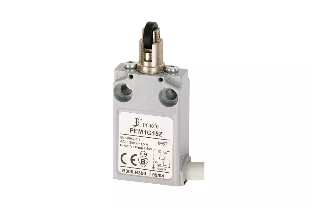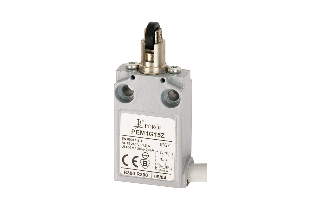 Wyłącznik krańcowy 1R 1Z migowy popychacz metalowy z rolką z tworzywa prostopadłą Ø12 PEM1G15Z A37-A86Z
