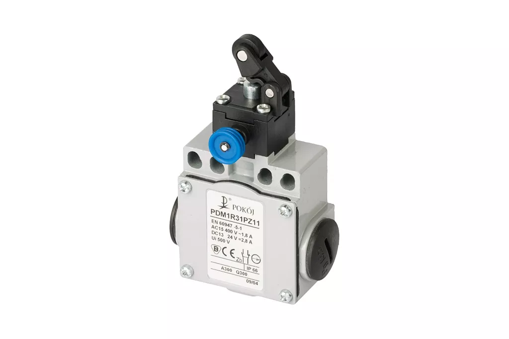 Wyłącznik krańcowy 1R 1Z migowy popychacz stalowy dźwignia pozioma z rolką Ø12,5 z resetem PDM1R31PZ11 A37-5R30