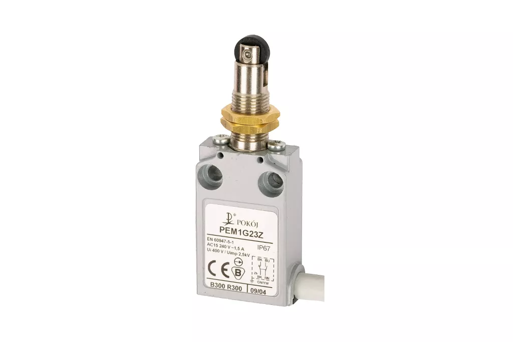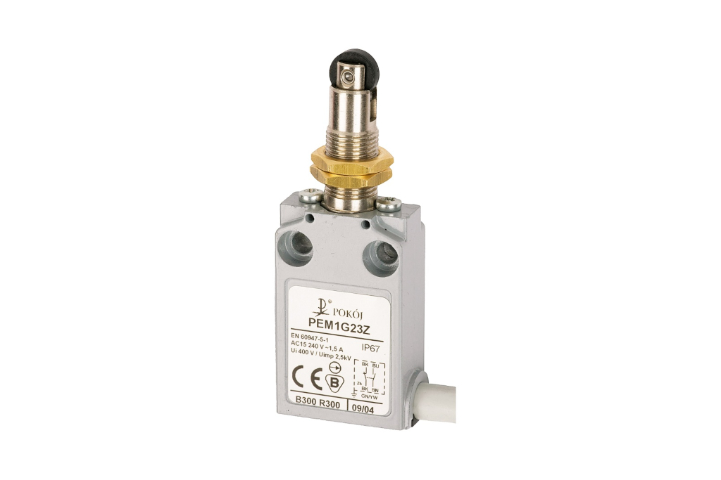 Wyłącznik krańcowy 1R 1Z migowy rolka z tworzywa Ø10,7 z mocowaniem za gwintowaną głowicę PEM1G23Z A37-A89Z