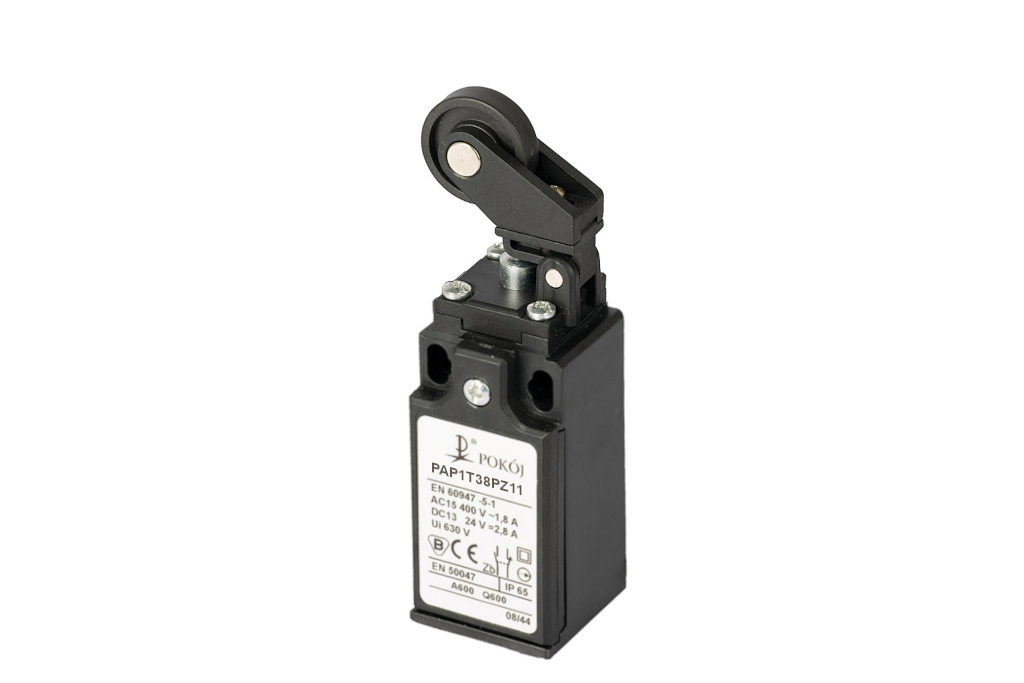 Wyłącznik krańcowy 1R 1Z migowy tworzywo opychacz stalowy dźwignia z rolką z tworzywa Ø22 PAP1T38PZ11 A37-1970