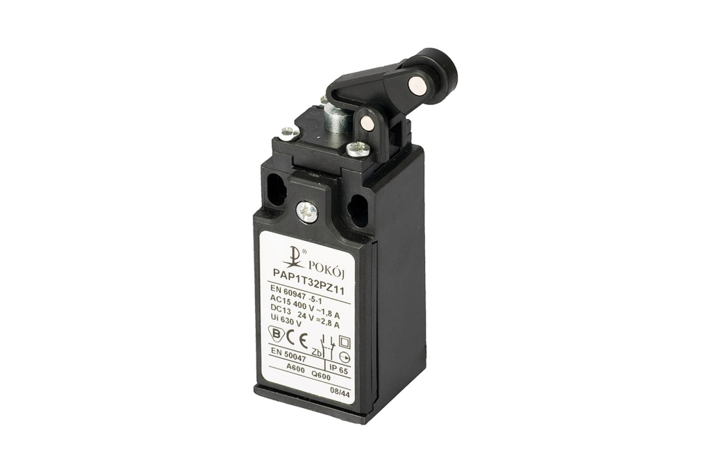 Wyłącznik krańcowy 1R 1Z migowy tworzywo popychacz stalowy dźwignia z rolką z tworzywa Ø12,5 PAP1T32PZ11 A37-1060