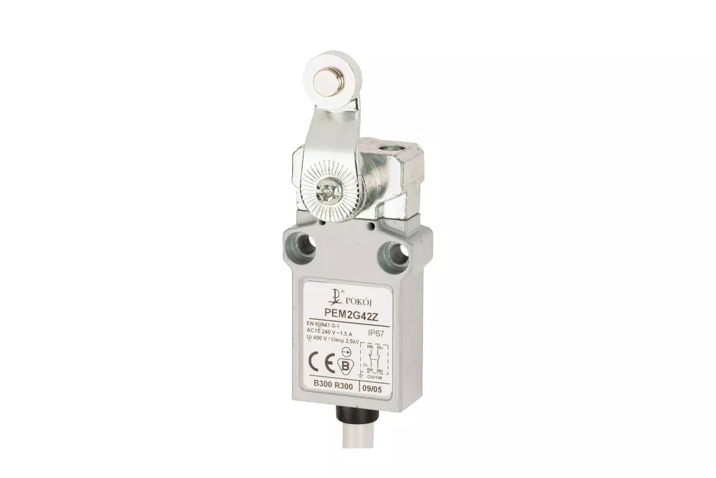 Wyłącznik krańcowy 1R 1Z wolnoprzełączający dźwignia z rolką metalową Ø14 PEM2G42X A37-B93X