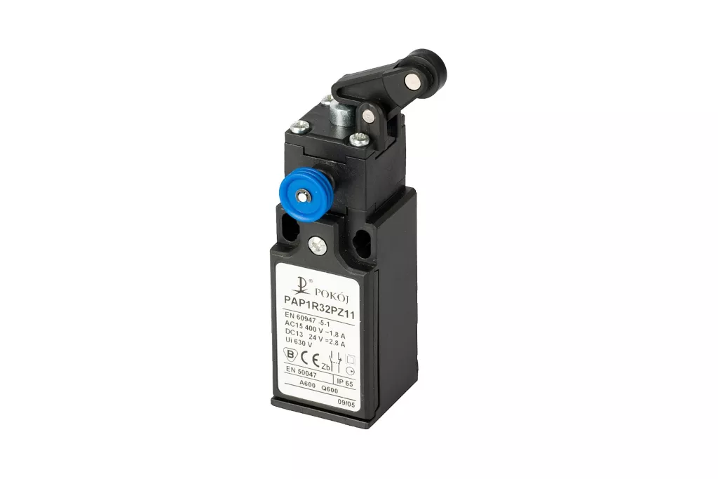 Wyłącznik krańcowy 1R 1Z wolnoprzełączający popychacz stalowy dźwignia pionowa z rolką Ø12,5 z resetem PAP1R32PX11 A37-1R42