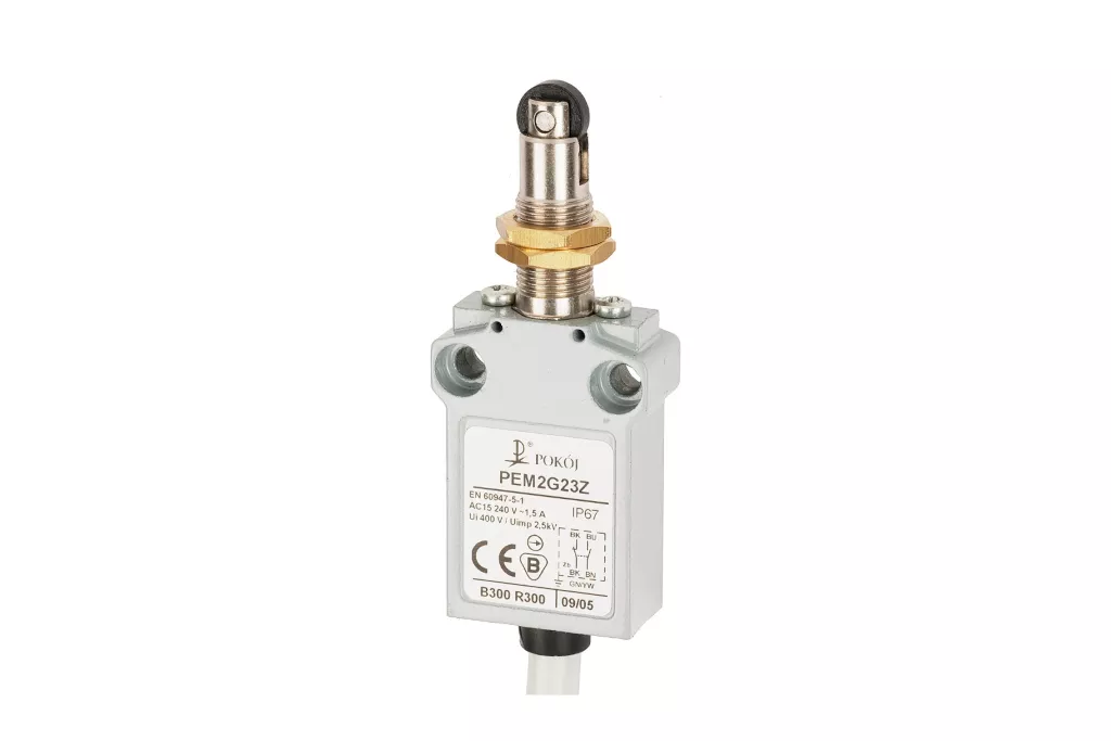 Wyłącznik krańcowy 1R 1Z wolnoprzełączający rolka z tworzywa Ø10,7 z mocowaniem za gwintowaną głowicę PEM2G23X A37-B89X