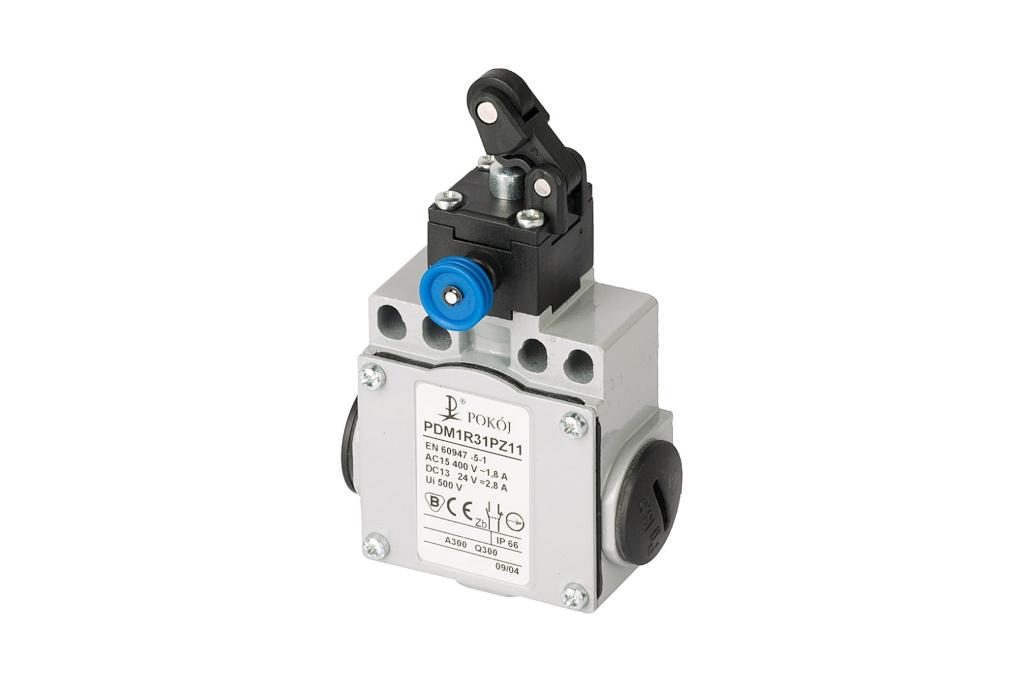 Wyłącznik krańcowy 2R migowy popychacz stalowy dźwignia pozioma z rolką Ø12,5 z resetem PDM1R31PZ02 A37-5R31