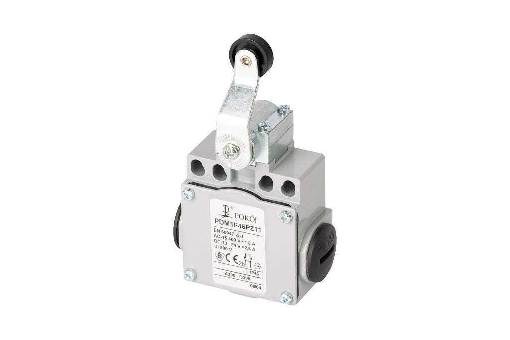 Wyłącznik krańcowy 2R wolnoprzełączający dźwignia długa z rolką z tworzywa Ø18 PDM1F45PW02 A37-5714