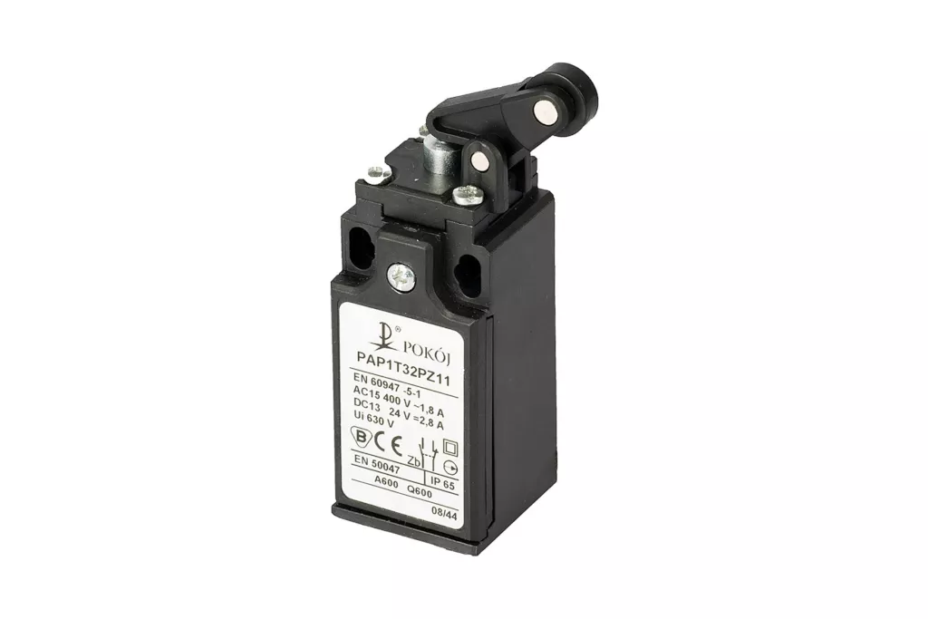 Wyłącznik krańcowy 2R wolnoprzełączający popychacz stalowy dźwignia pionowa z rolką Ø12,5 PAP1T32PW02 A37-1064