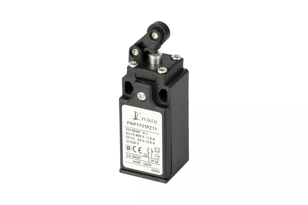 Wyłącznik krańcowy 2R wolnoprzełączający tworzywo popychacz stalowy dźwignia z rolką z tworzywa Ø12,5 PAP1T31PW02 A37-1054