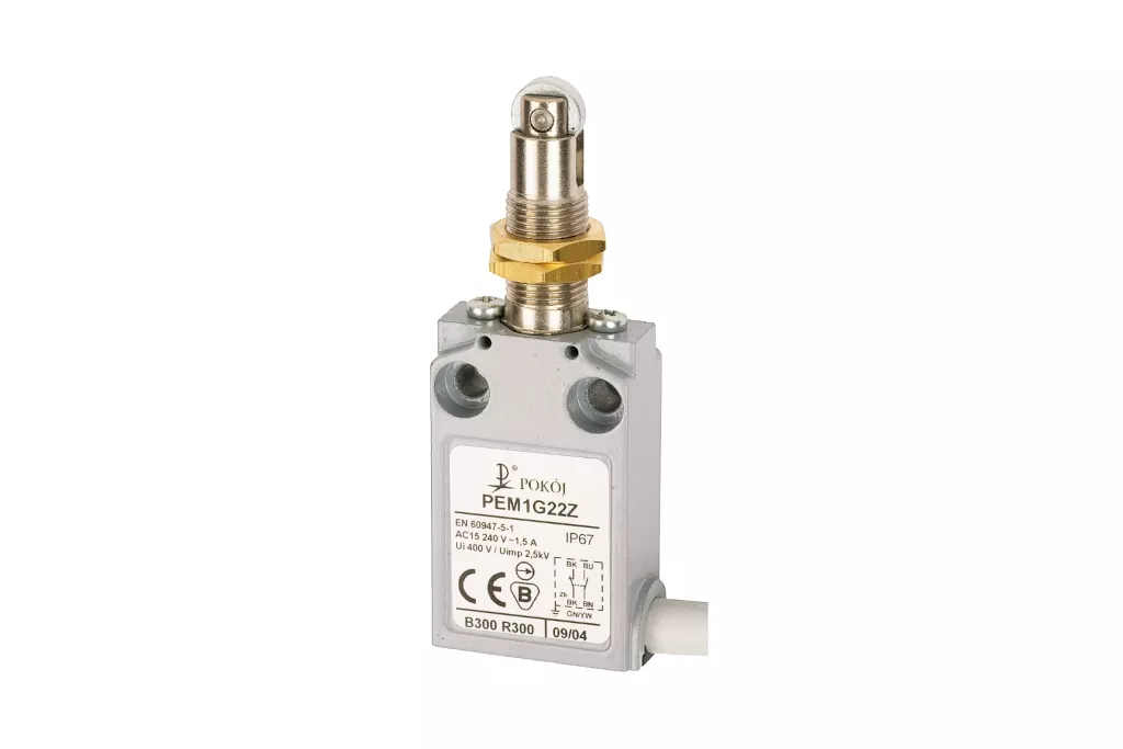 Wyłącznik krańcowy IP67 2R 2Z wolnoprzełączający rolka stalowa Ø10,4 z mocowaniem za gwintowaną głowicę PEM1G22X4 B37-A88X4