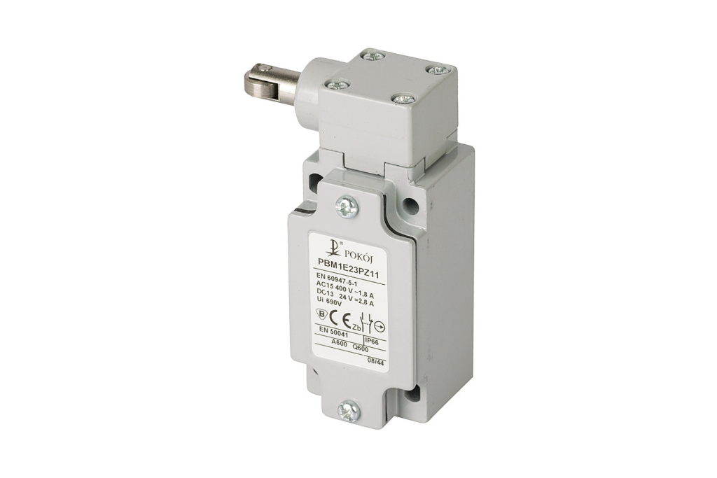 Wyłącznik krańcowy metal 1R 1Z migowy boczny popychacz stalowy z poziomą rolką stalową Ø12 PBM1E23PZ11 A37-3440