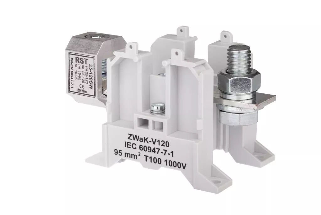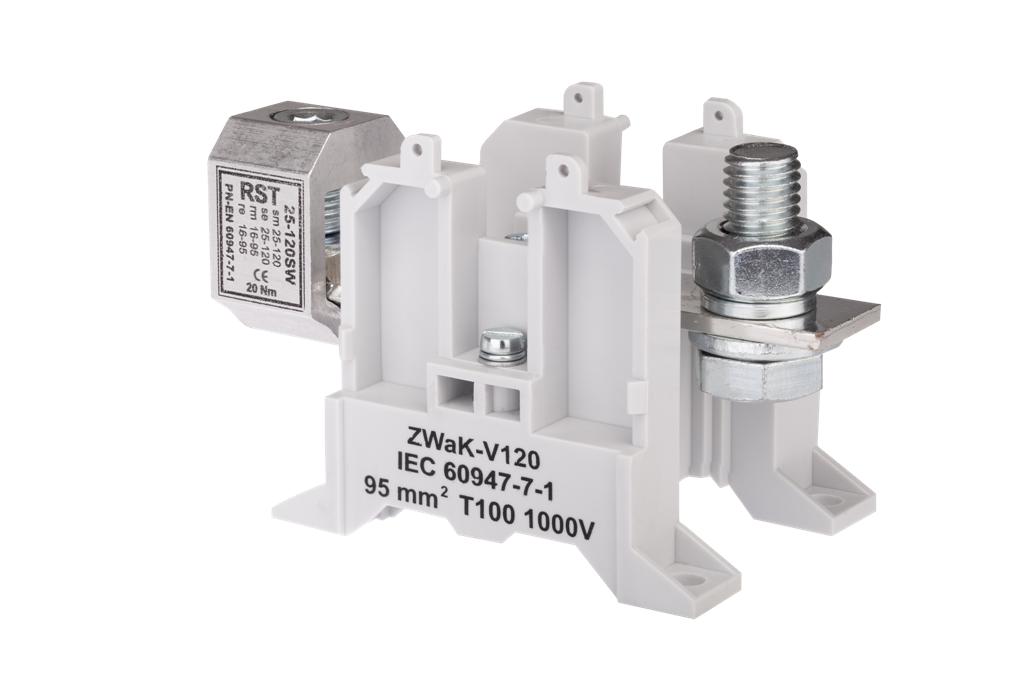 Złączka szynowa 2-przewodowa wielkoprądowa 16-95 mm2 zaciski do żył z końcówką kablową + V-klema szary ZWaK-V120 A11-1928