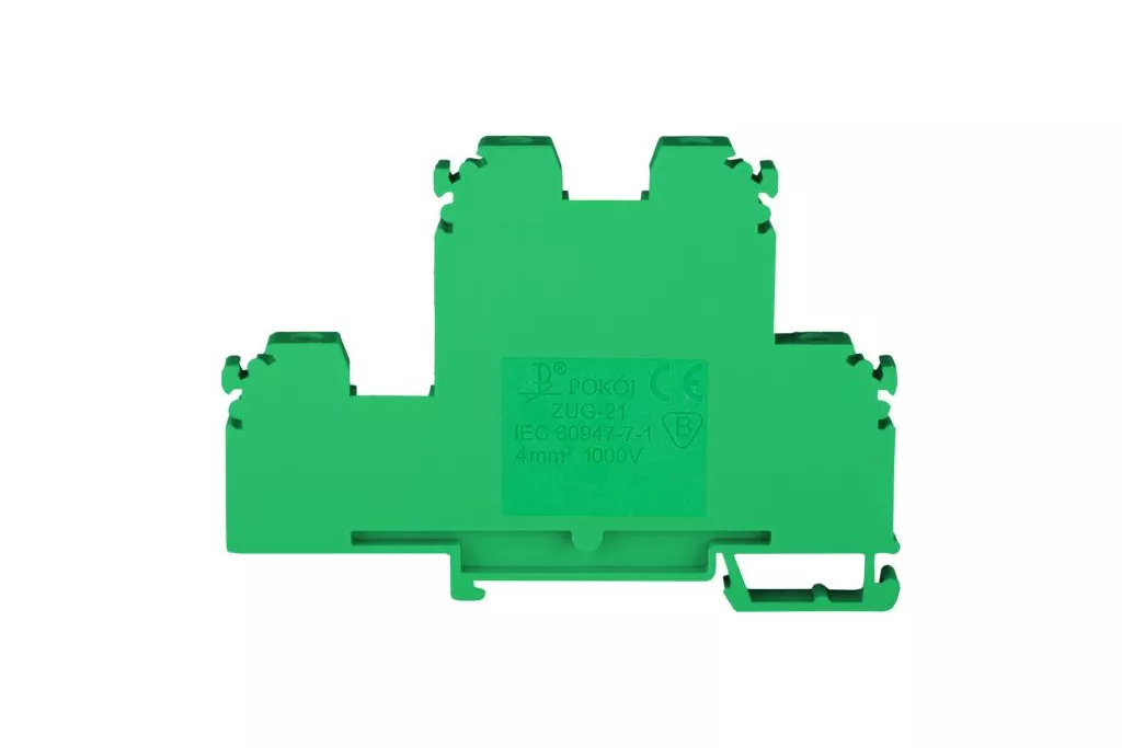 Złączka szynowa 4-przewodowa 2-piętrowa z czterema zaciskami 4mm2 zielony V0 ZUG-21 A00-A005