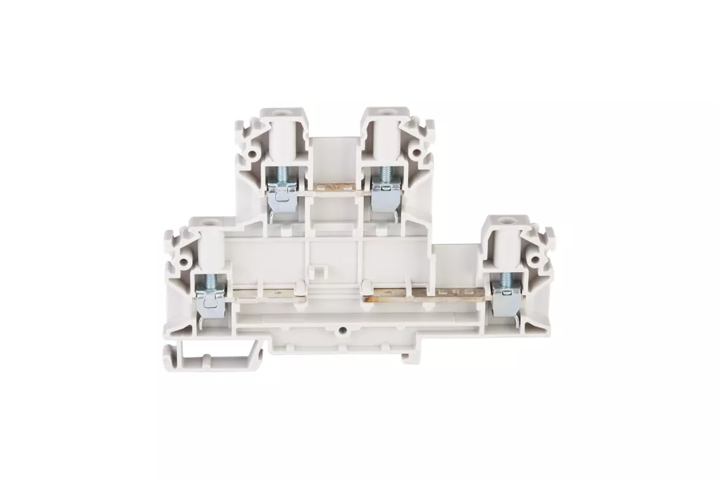 Złączka szynowa 4-przewodowa 2-piętrowa z czterema zaciskami i dzielonym torem prądowym 4mm2 biały V0 ZUG-22 A00-B002