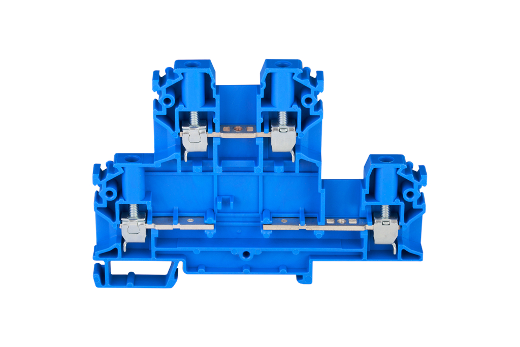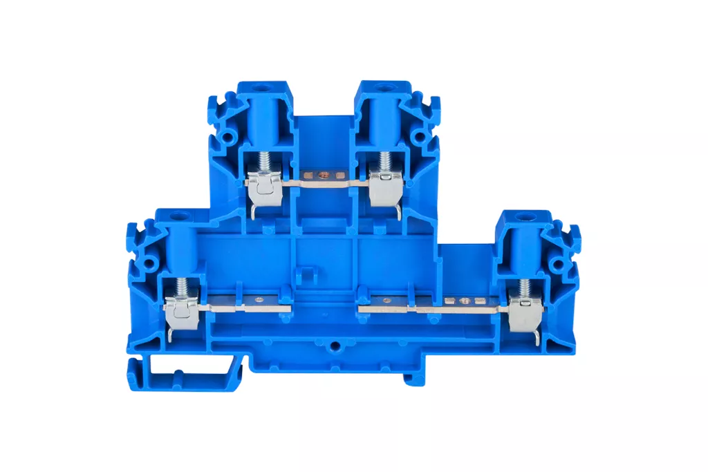 Złączka szynowa 4-przewodowa 2-piętrowa z czterema zaciskami i dzielonym torem prądowym 4mm2 niebieski V0 ZUG-22 A00-B006