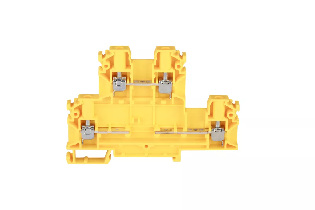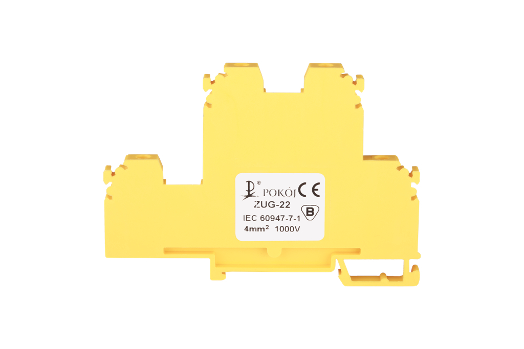 Złączka szynowa 4-przewodowa 2-piętrowa z czterema zaciskami i dzielonym torem prądowym 4mm2 żółty V0 ZUG-22 A00-B001